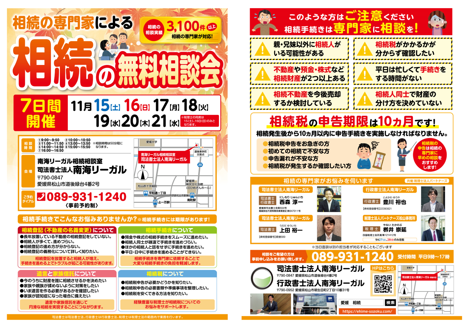 2025年11月15日(土)~11月21日(金)に相続の無料相談会開催!