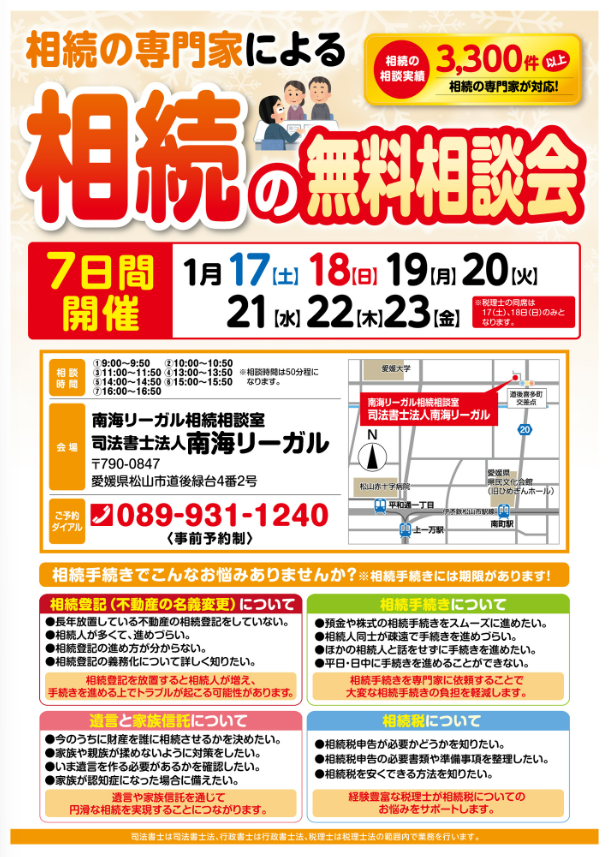 2026年1月相続の無料相談会を開催します!